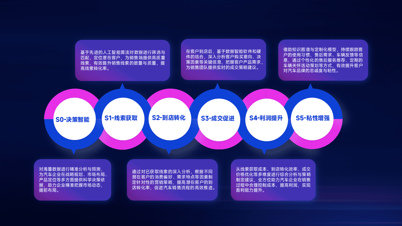 通过拓宽潜在客户来源、、优化线索分配并提高到店转化率,,以增强销售效率。。。同时,,利用线索数据不断优化分析模型,,,,有效提升转化率,,,,扩大营销影响力。。。。